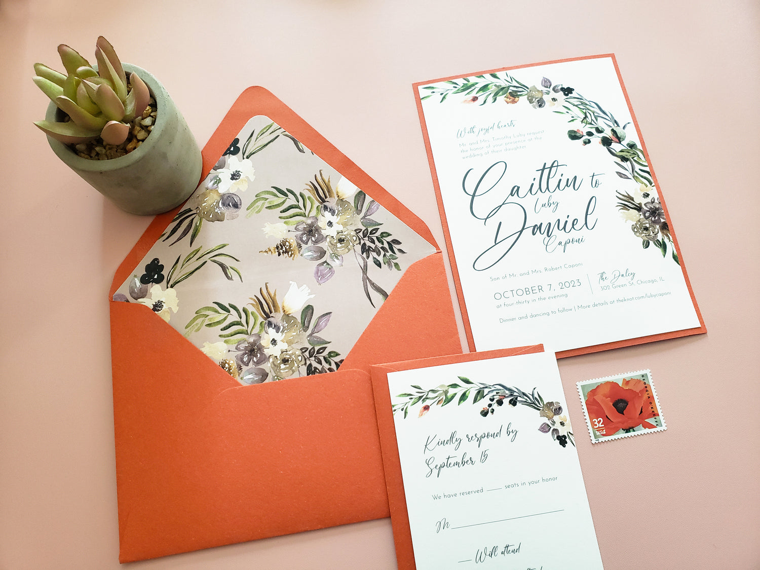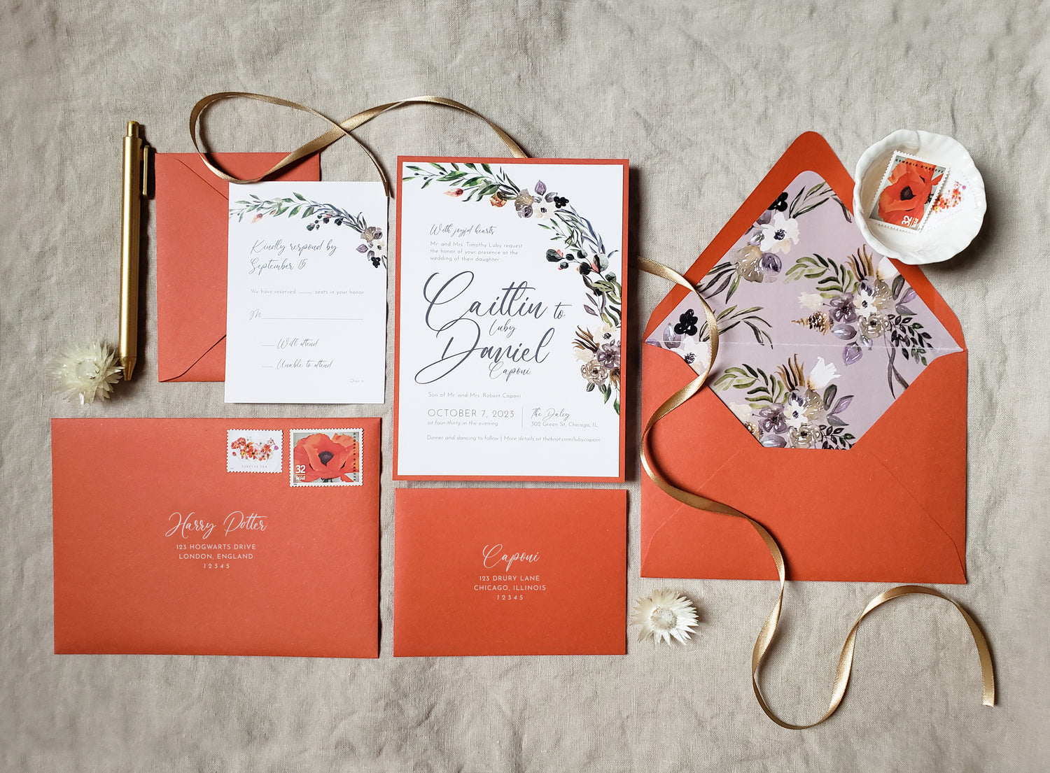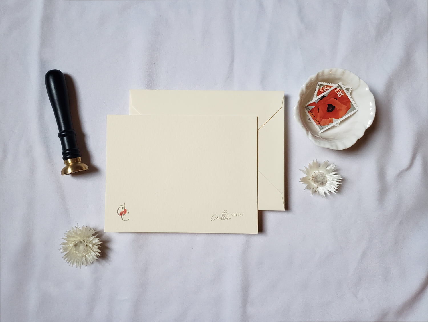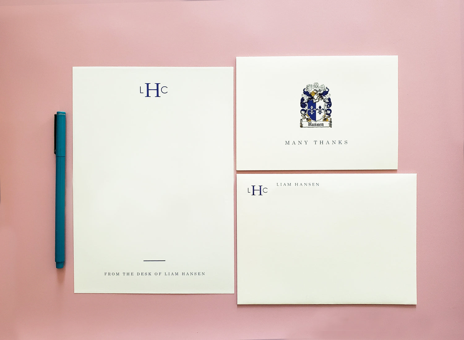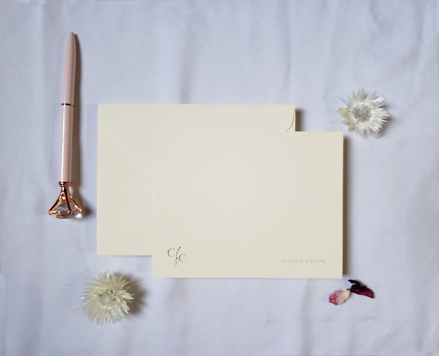 Read about custom invitation process and pricing here. Read about custom personal stationery process and pricing here.