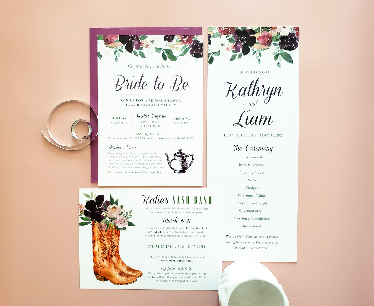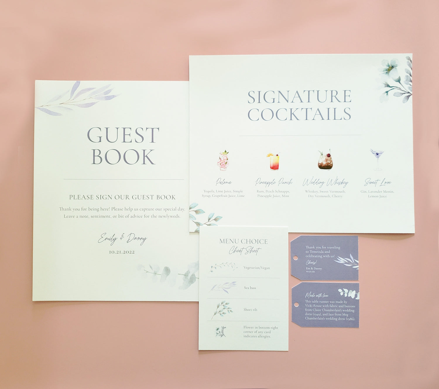- Wedding day paper (such as programs, menus, signage, table numbers)